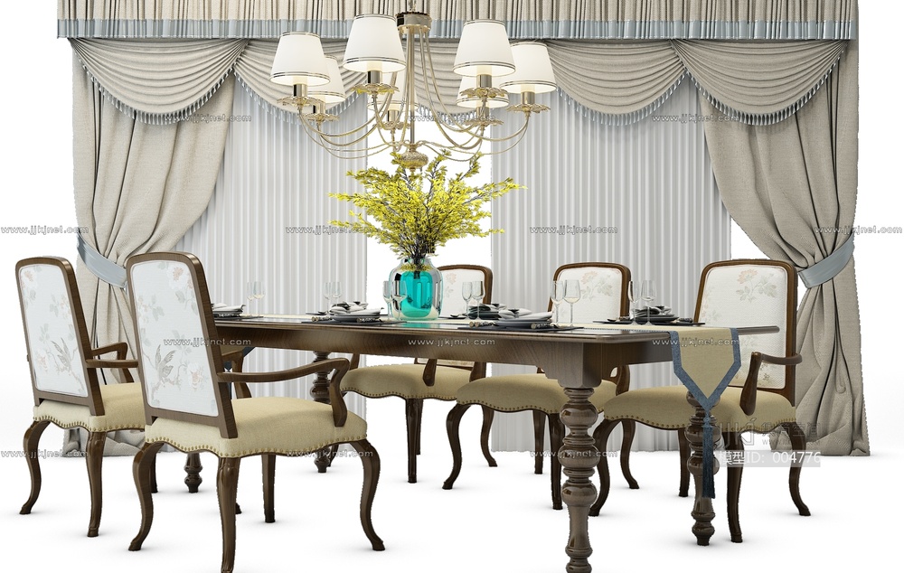 欧式古典餐桌椅组合3D模型3d模型下载