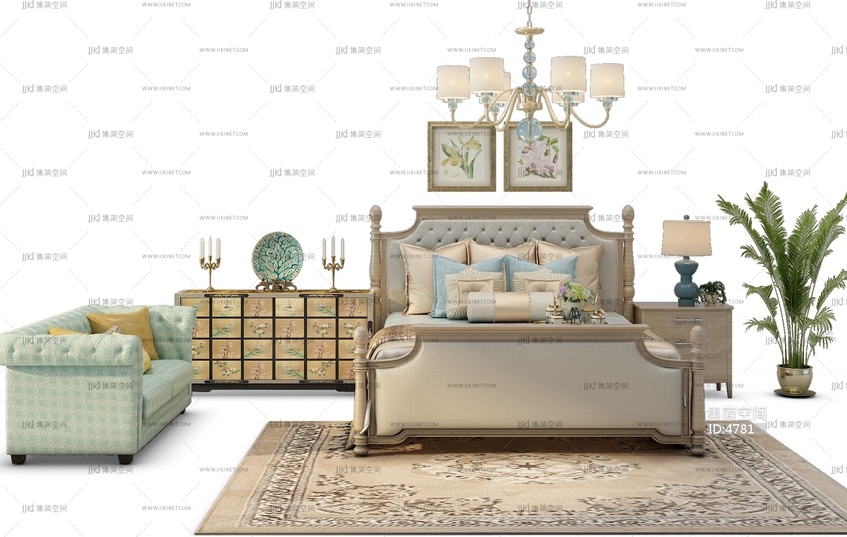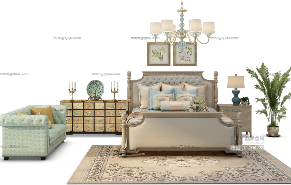 Z06-0704美式欧式床床头柜组合 3d模型下载 [模型ID:4781]