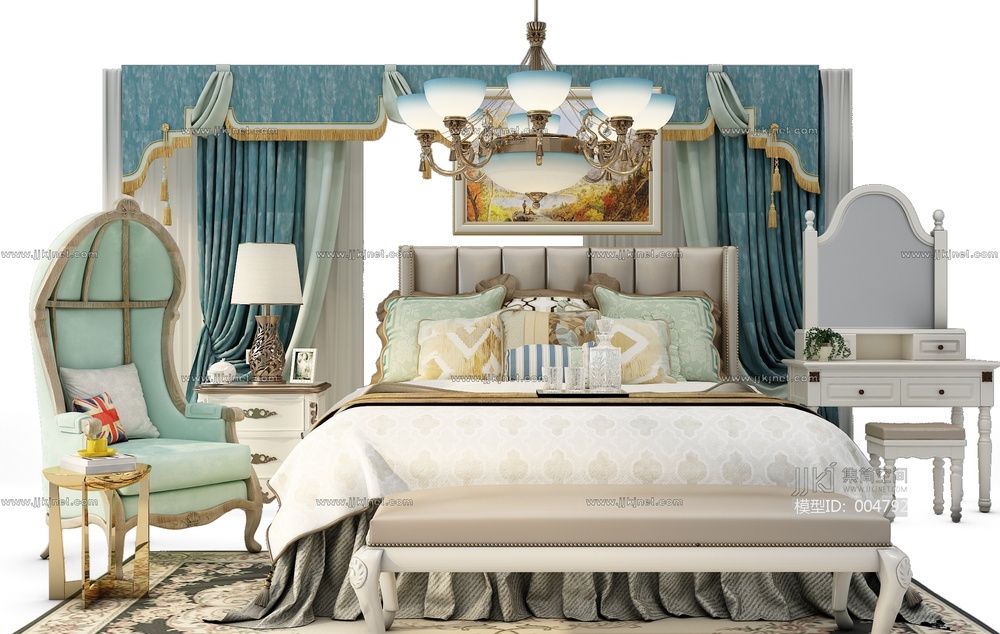 201简欧卧室双人床3d模型下载