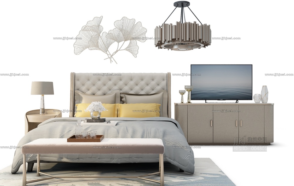 Z09-0706简欧床电视柜 3d模型下载 [模型ID:4801]