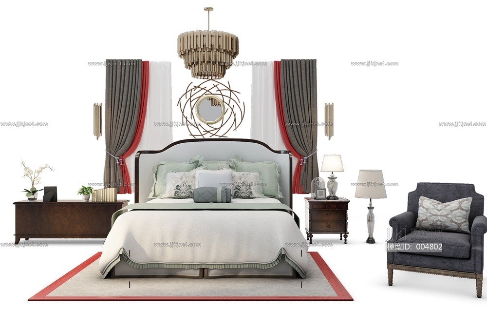 Z10-0706简欧床窗帘 3d模型下载 [模型ID:4802]