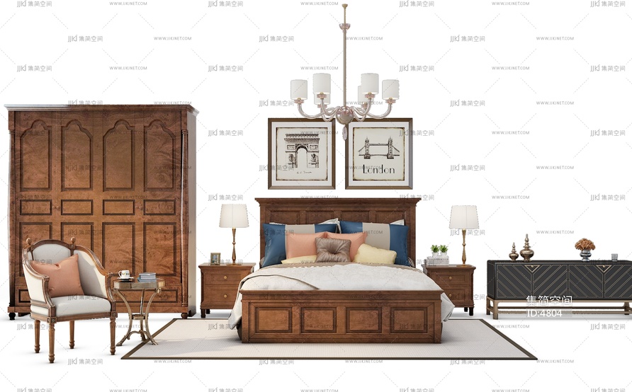 Z16-0706欧式床电视柜衣柜组合 3d模型下载 [模型ID:4804]