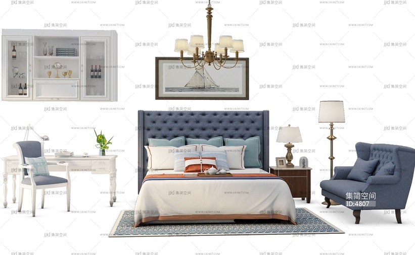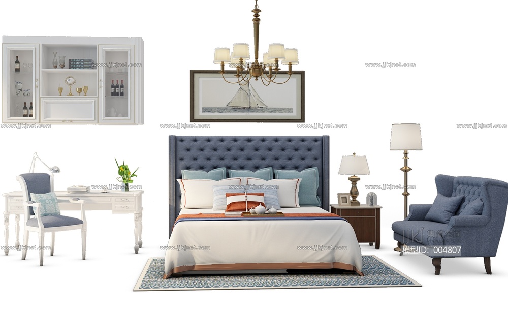 Z19-0706现代床休闲椅组合 3d模型下载 [模型ID:4807]