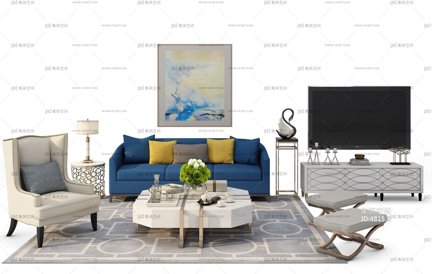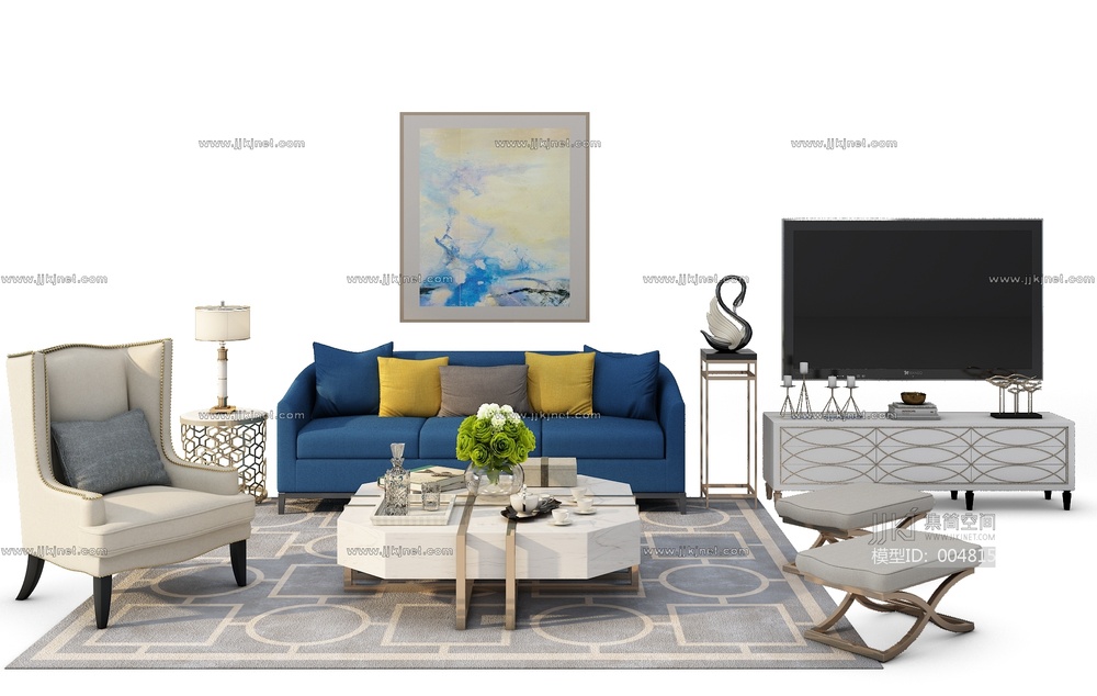 Z07-0707现代欧式沙发电视柜组合 3d模型下载 [模型ID:4815]
