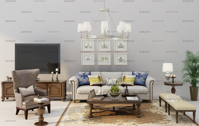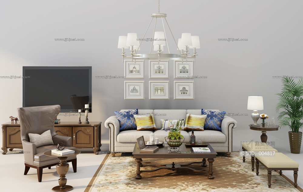 Z10-0707简欧沙发茶几电视柜组合 3d模型下载 [模型ID:4817]