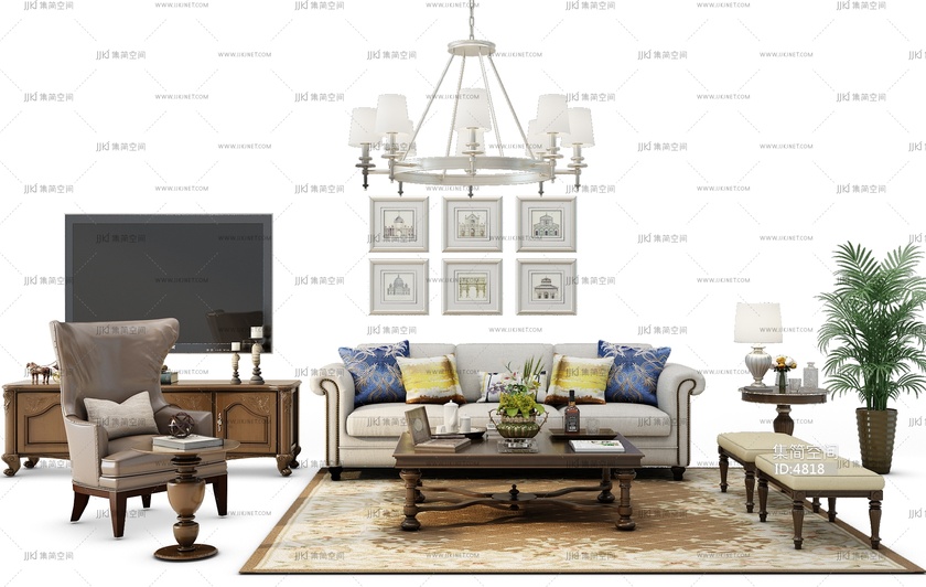 Z11-0707欧式美式沙发茶几组合 3d模型下载 [模型ID:4818]