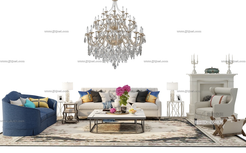 Z03-0709简欧沙发茶几组合 3d模型下载 [模型ID:4826]