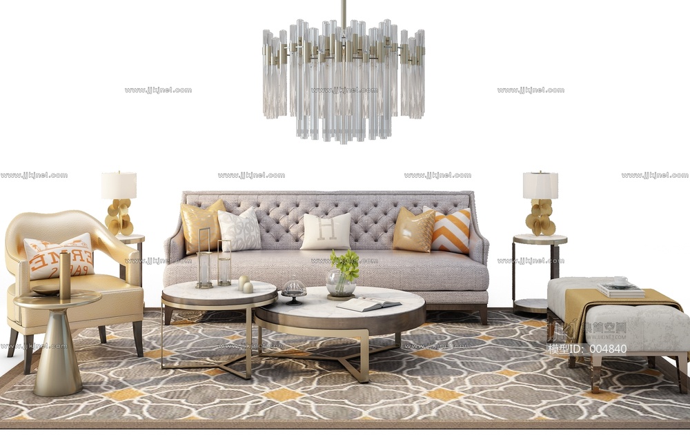 Z10-0710简欧沙发茶几组合 3d模型下载 [模型ID:4840]