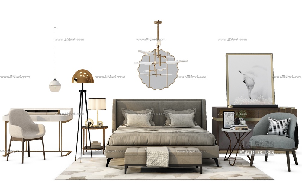 Z02-0717现代床书桌 3d模型下载 [模型ID:4889]