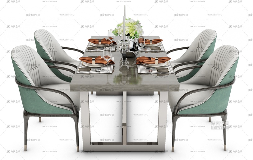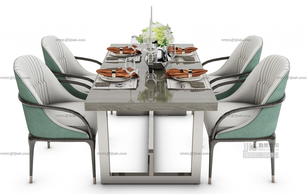 H08-0702现代中式餐桌椅 3d模型下载 [模型ID:4912]