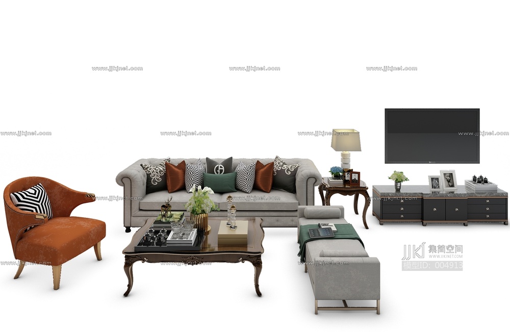 H09-0702欧式沙发茶几组合 3d模型下载 [模型ID:4913]