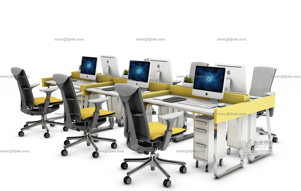 现代工位办公桌,员工工位苹果电脑,办公椅3d模型下载