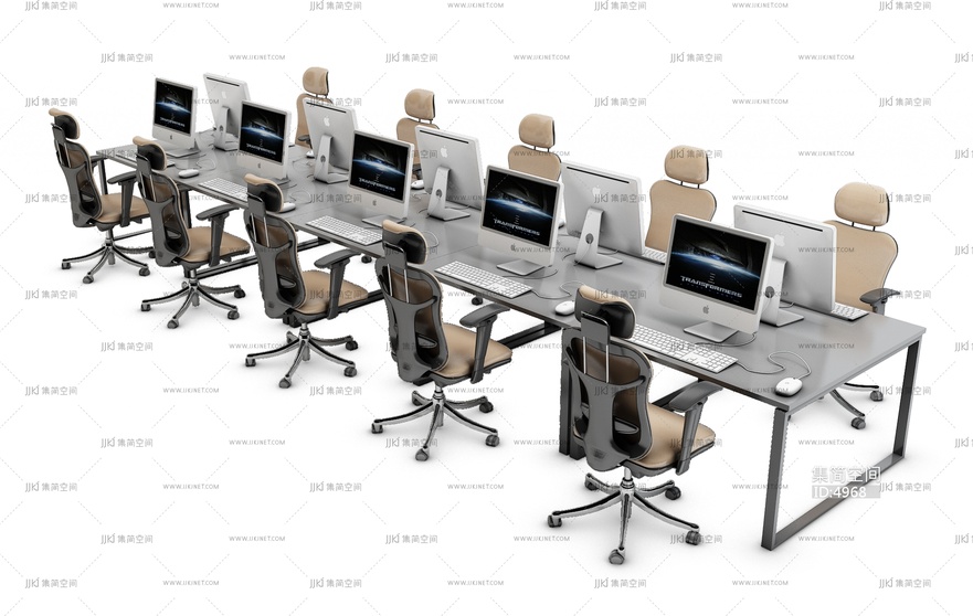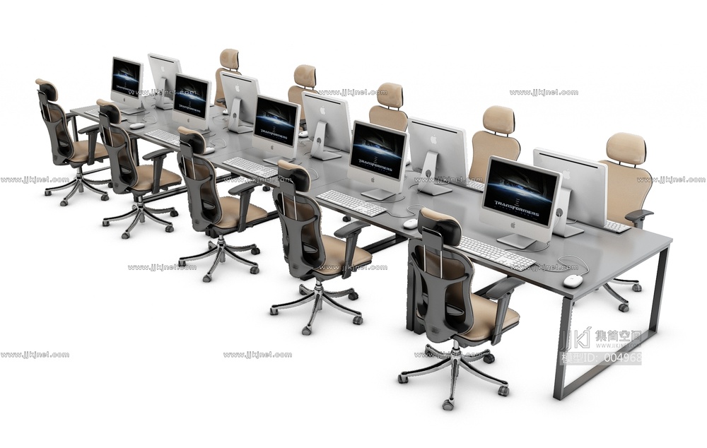 现代工位办公桌,员工工位苹果电脑,办公椅3d模型下载