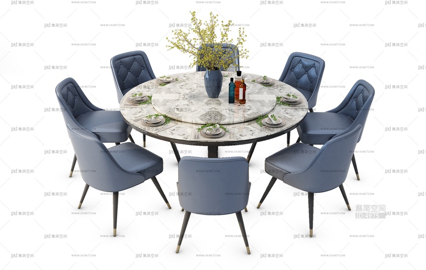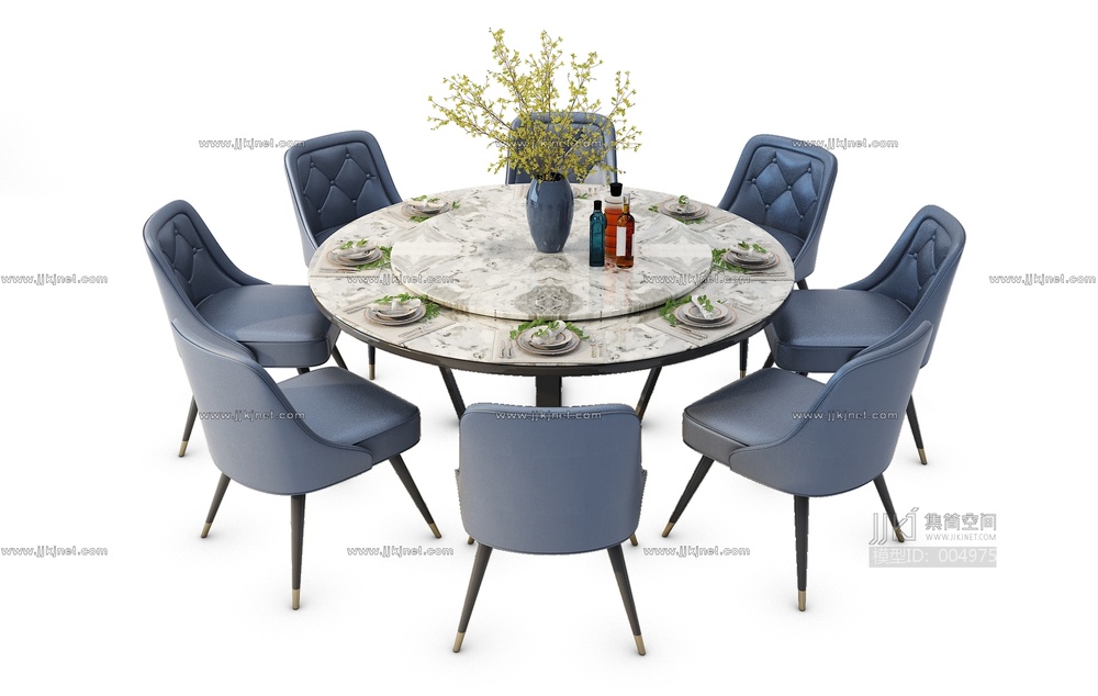 H10-0704圆形餐桌椅组合 3d模型下载 [模型ID:4975]