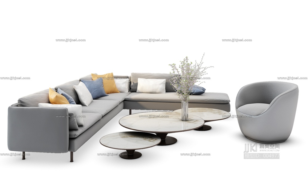 H12-0704现代沙发茶几组合 3d模型下载 [模型ID:4977]