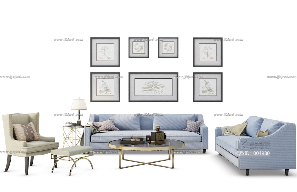 H17-0704简欧沙发组合挂画 3d模型下载 [模型ID:4980]