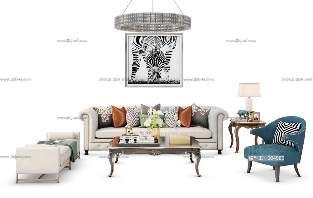 H19-0704欧式沙发茶几组合 3d模型下载 [模型ID:4982]