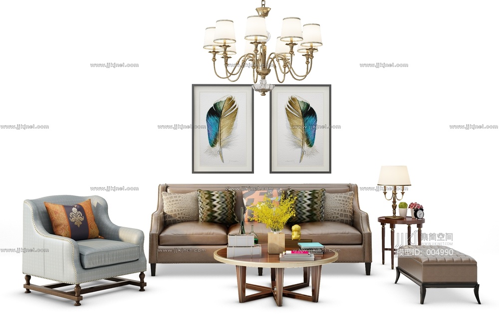 H13-0705简欧沙发茶几组合 3d模型下载 [模型ID:4990]