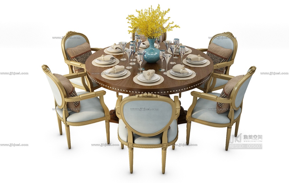 H05-0706欧式餐桌椅组合 3d模型下载 [模型ID:5007]