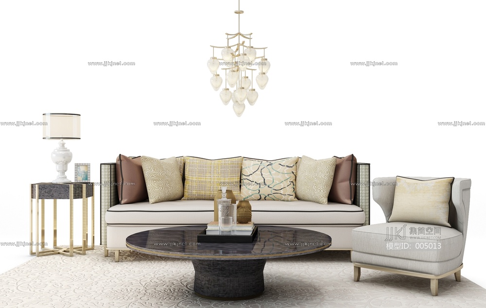 H03-0709现代中式沙发茶几组合 3d模型下载 [模型ID:5013]