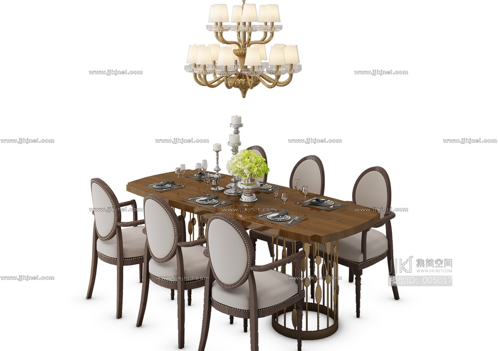 H08-0709简欧餐桌椅组合 3d模型下载 [模型ID:5017]