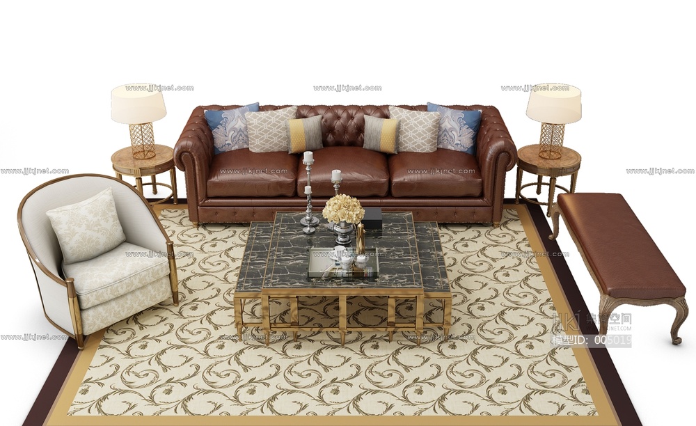 H09-0709欧式沙发茶几组合 3d模型下载 [模型ID:5019]