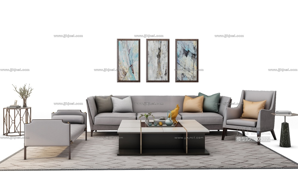 H10-0709现代沙发茶几组合 3d模型下载 [模型ID:5022]