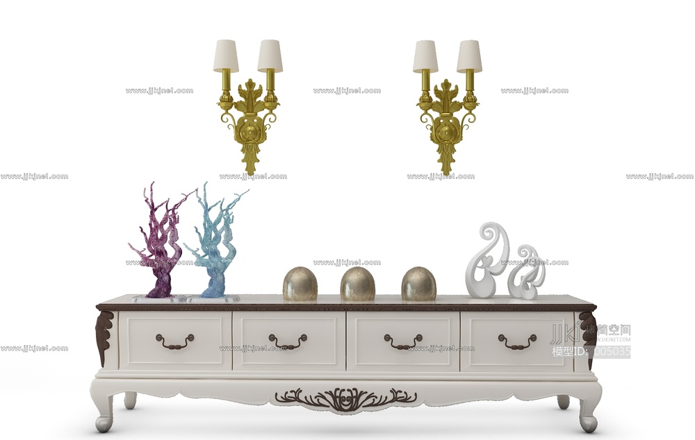 欧式电视柜 饰品摆件法式电视柜3D模型3d模型下载