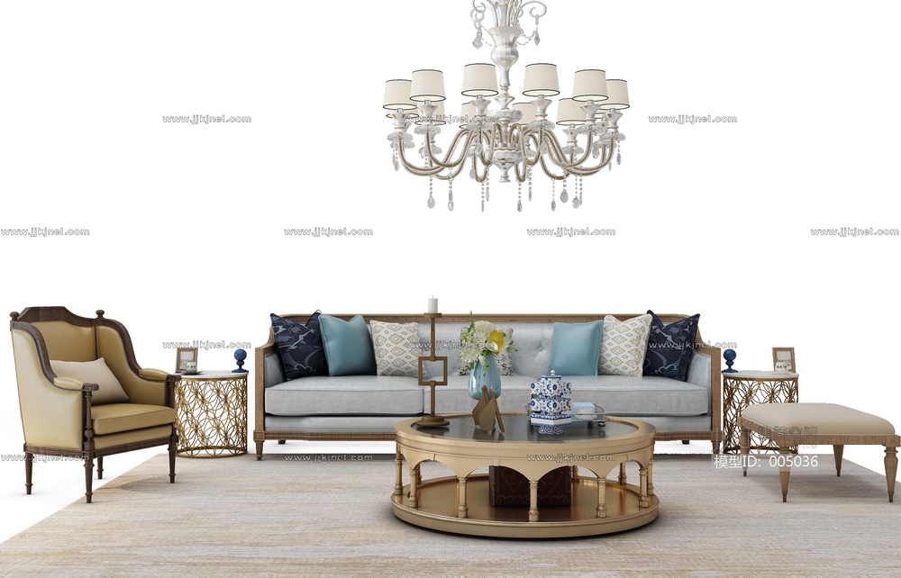 H04-0710欧式沙发茶几组合 3d模型下载 [模型ID:5036]