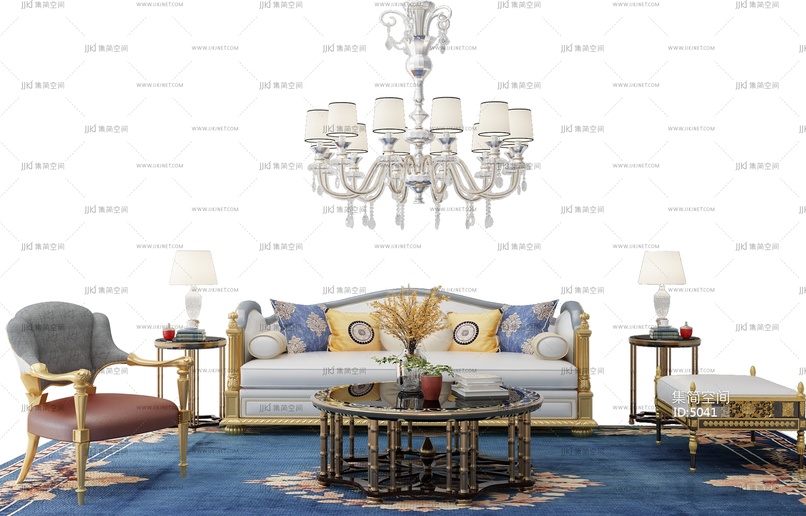 H09-0710欧式美式沙发茶几组合 3d模型下载 [模型ID:5041]
