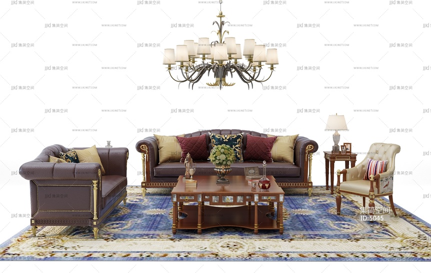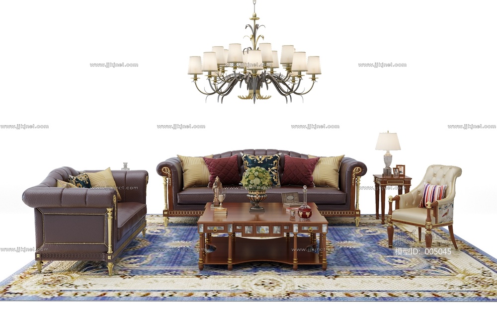 H14-0710欧式沙发茶几组合 3d模型下载 [模型ID:5045]