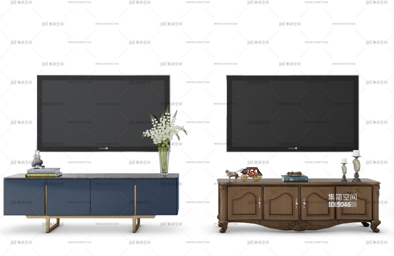 欧式电视柜 饰品摆件法式电视柜3D模型3d模型下载