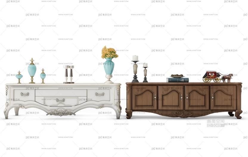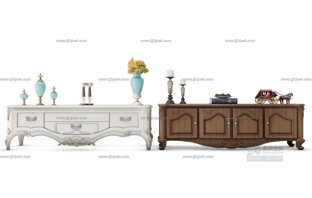 欧式电视柜 饰品摆件法式电视柜3D模型3d模型下载