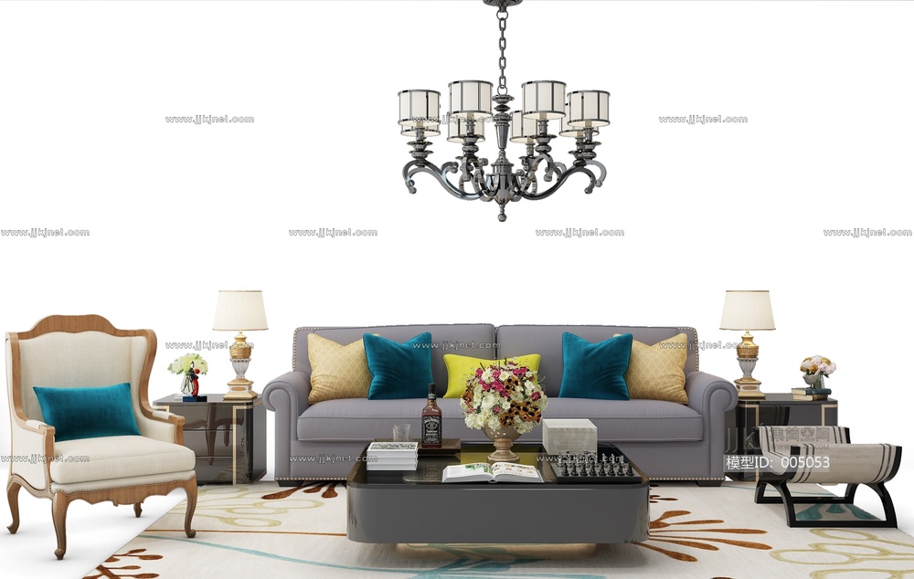 H14-0711简欧沙发茶几组合 3d模型下载 [模型ID:5053]