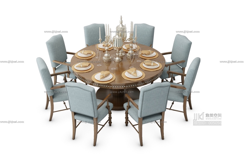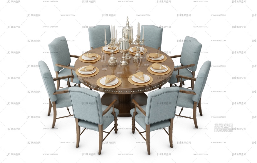 H15-0711简欧圆形餐桌椅组合 3d模型下载 [模型ID:5056]