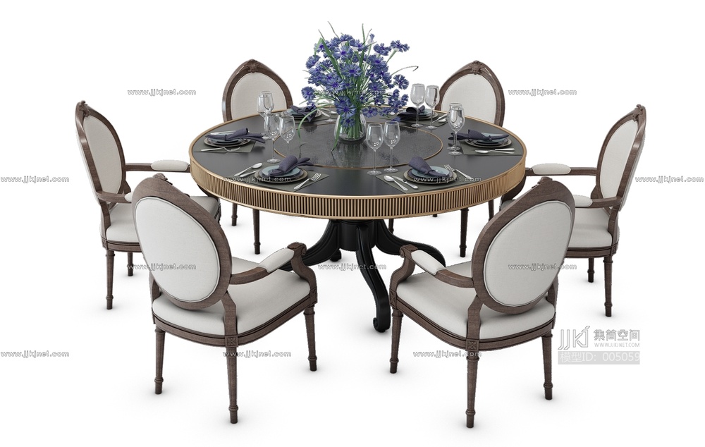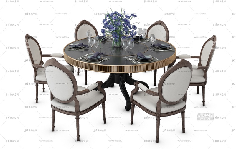 H01-0712简欧餐桌椅组合 3d模型下载 [模型ID:5059]