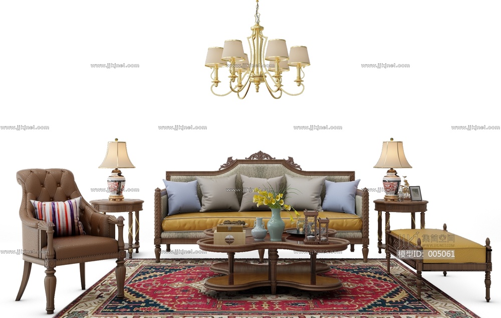 H04-0712欧式美式客厅沙发茶几组合灯几台灯 3d模型下载 [模型ID:5061]