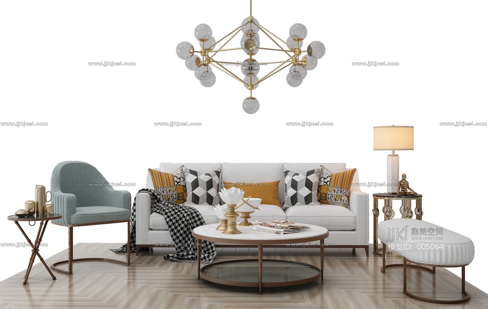 03-奶油中古沙发组合_沙发茶几组合_异形沙发_金属茶几_单人休闲椅_模块沙发3D模型3d模型下载