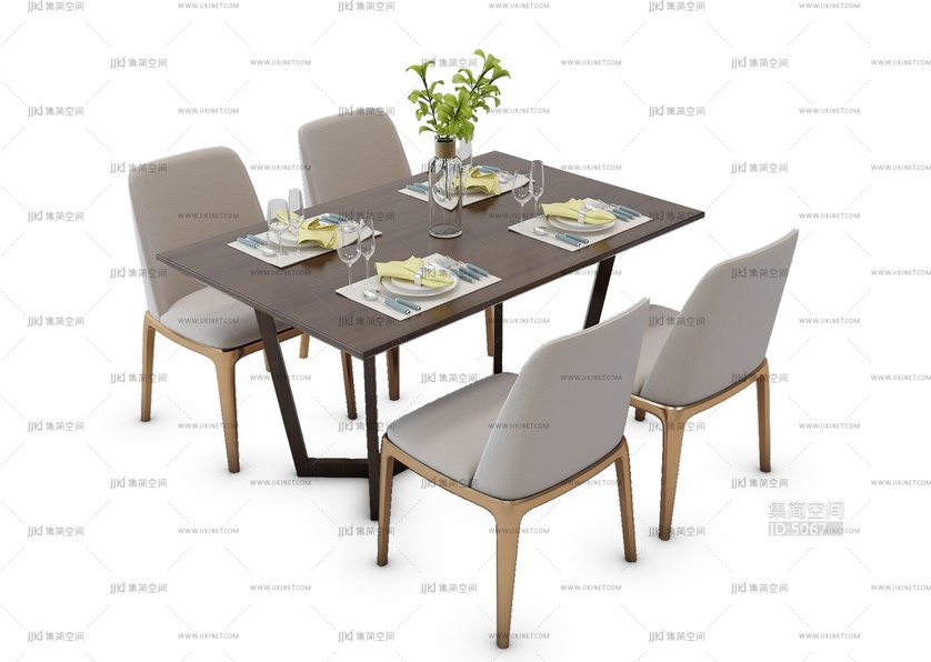 H11-0712现代餐桌椅 3d模型下载 [模型ID:5067]