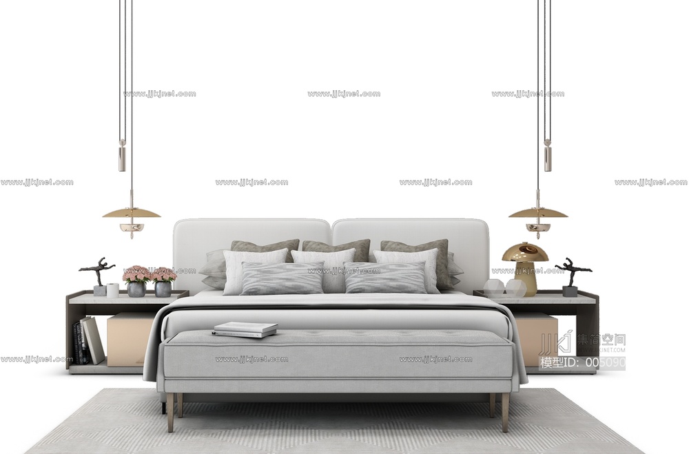 现代双人床3d模型下载