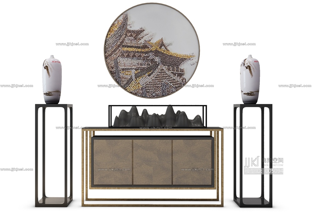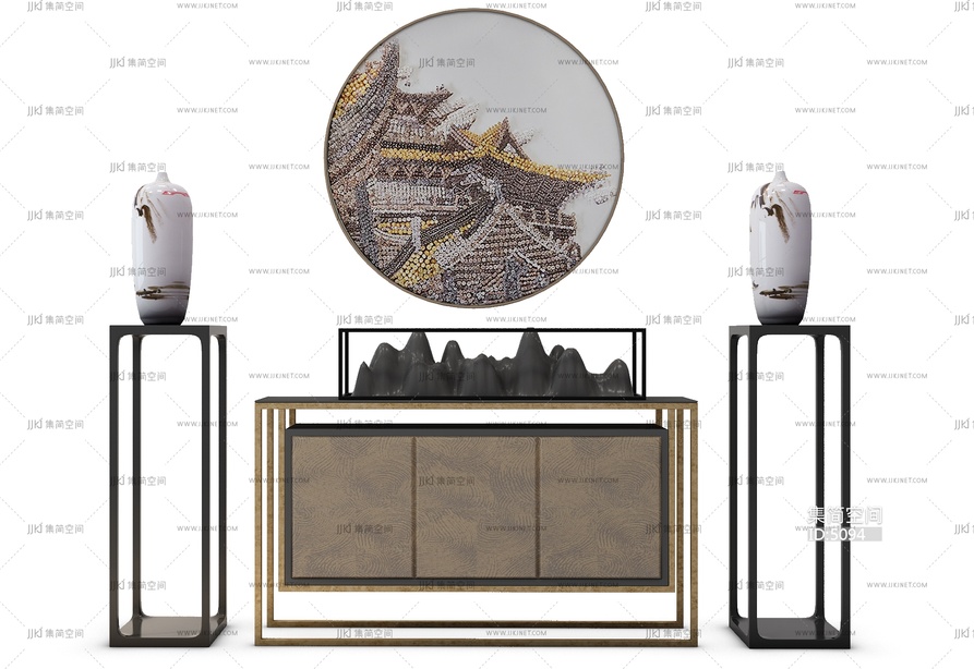 H05-0714新中式玄关柜 3d模型下载 [模型ID:5094]