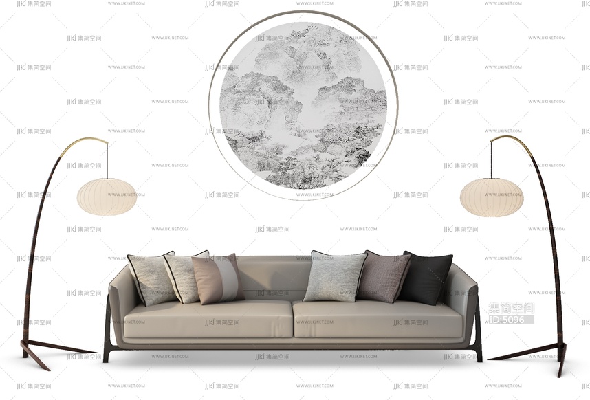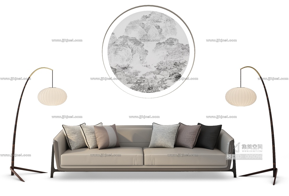 H07-0714新中式单体沙发落地灯 3d模型下载 [模型ID:5096]