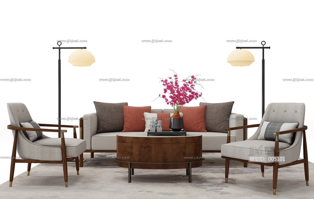 H12-0714现代中式沙发茶几组合 3d模型下载 [模型ID:5101]