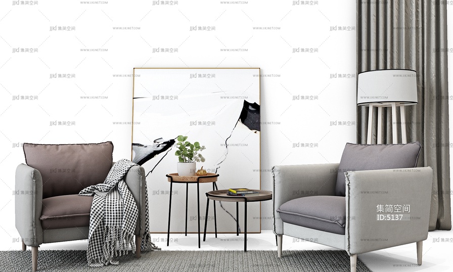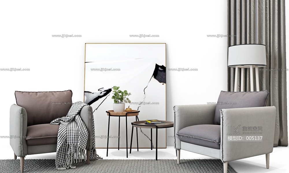 004北欧休闲沙发沙发201 3d模型下载 [模型ID:5137]