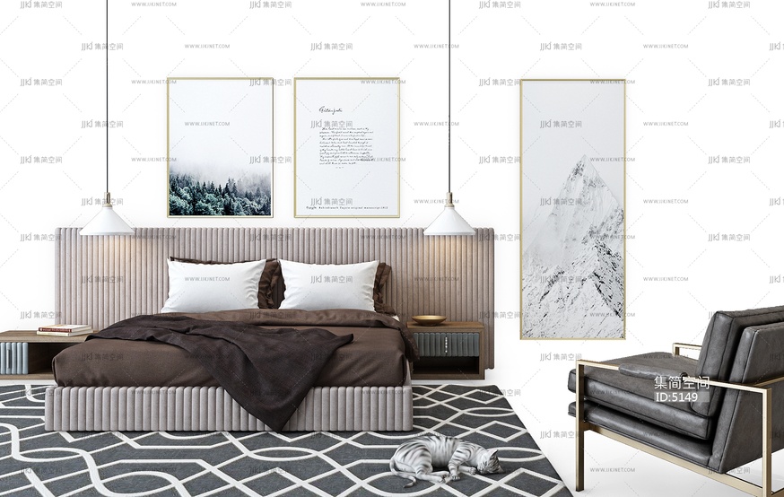 20180705-017北欧床2011 3d模型下载 [模型ID:5149]