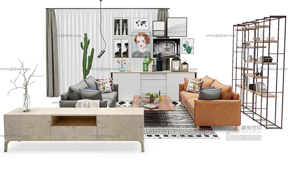 002北欧现代沙发组合2011 3d模型下载 [模型ID:5151]