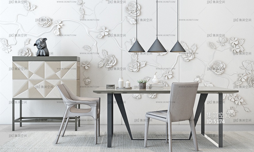 026北欧现代餐桌椅2011 3d模型下载 [模型ID:5174]