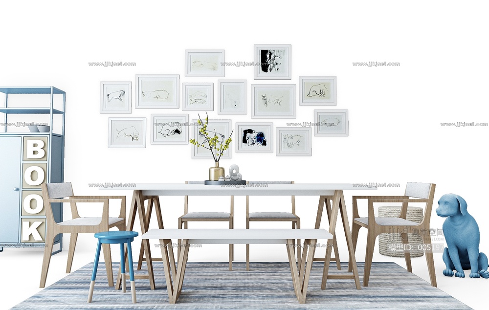 049北欧现代餐桌椅2011 3d模型下载 [模型ID:5197]