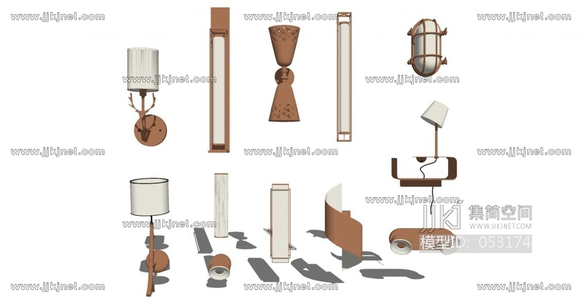 01现代工业风新中式壁灯小鹿壁灯 su草图模型下载 [模型ID:53174]