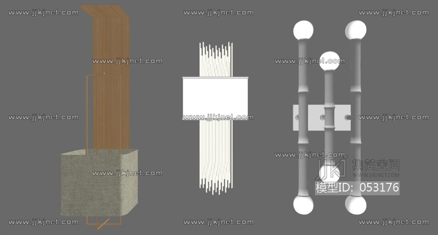 04北欧现代金属壁灯组合竹节壁灯 su草图模型下载 [模型ID:53176]